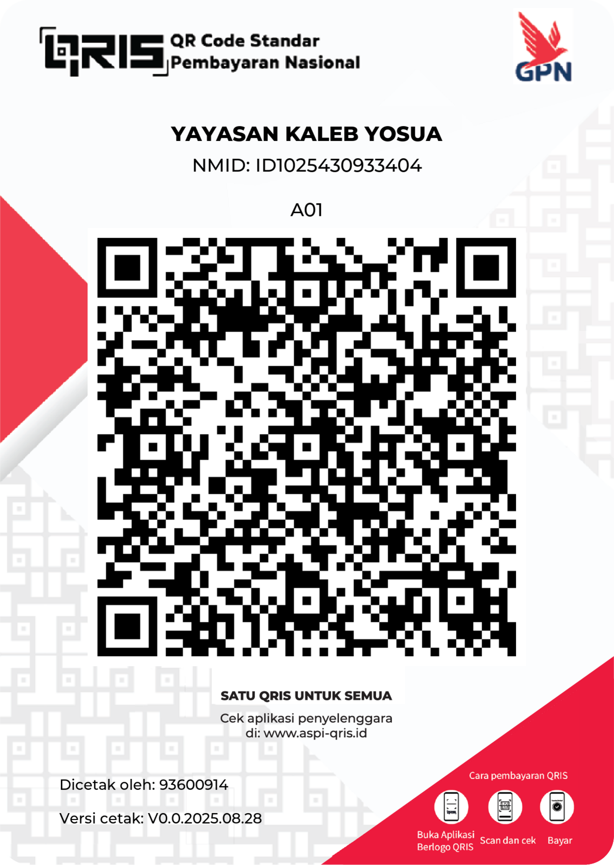 Di Yayasan Kaleb Yosua, kami percaya bahwa perubahan besar dimulai dari kepedulian kecil yang dilakukan bersama-sama. Donasi Anda bukan sekadar materi, melainkan harapan bagi mereka yang sedang berjuang. Dana yang terkumpul akan dialokasikan sepenuhnya untuk misi Penerjemahan Alkitab.